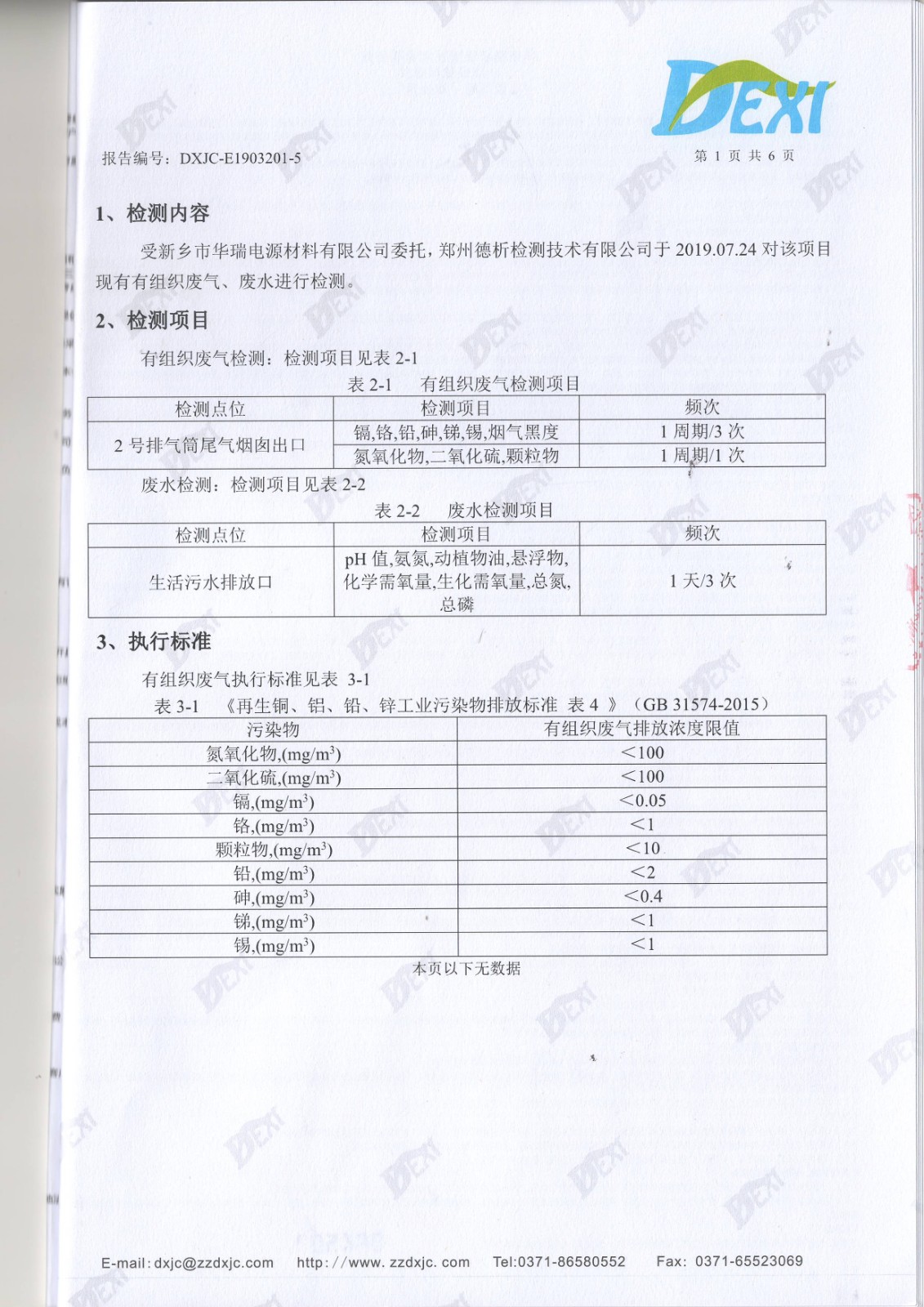 2019年7月廢氣廢水檢測