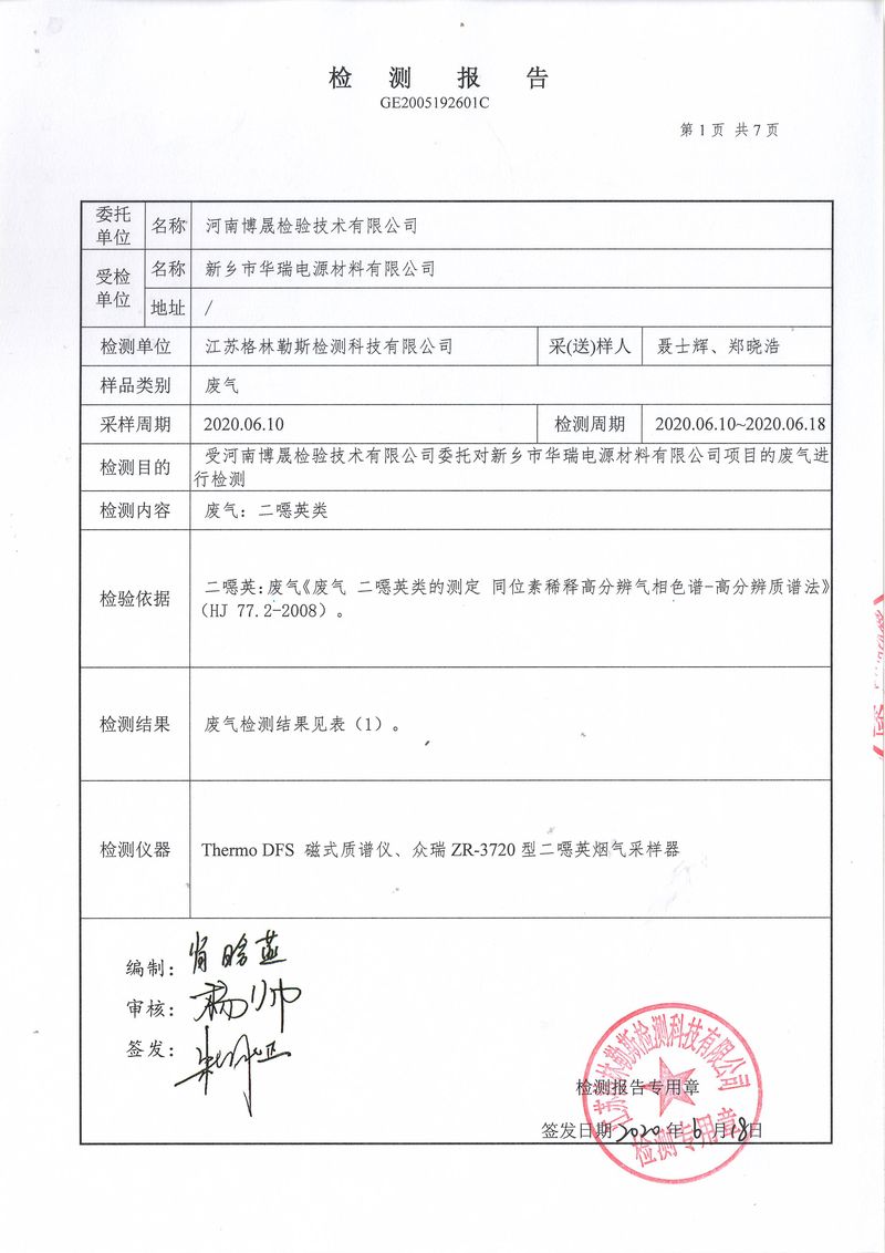 2020年6月份的檢測(cè)報(bào)告