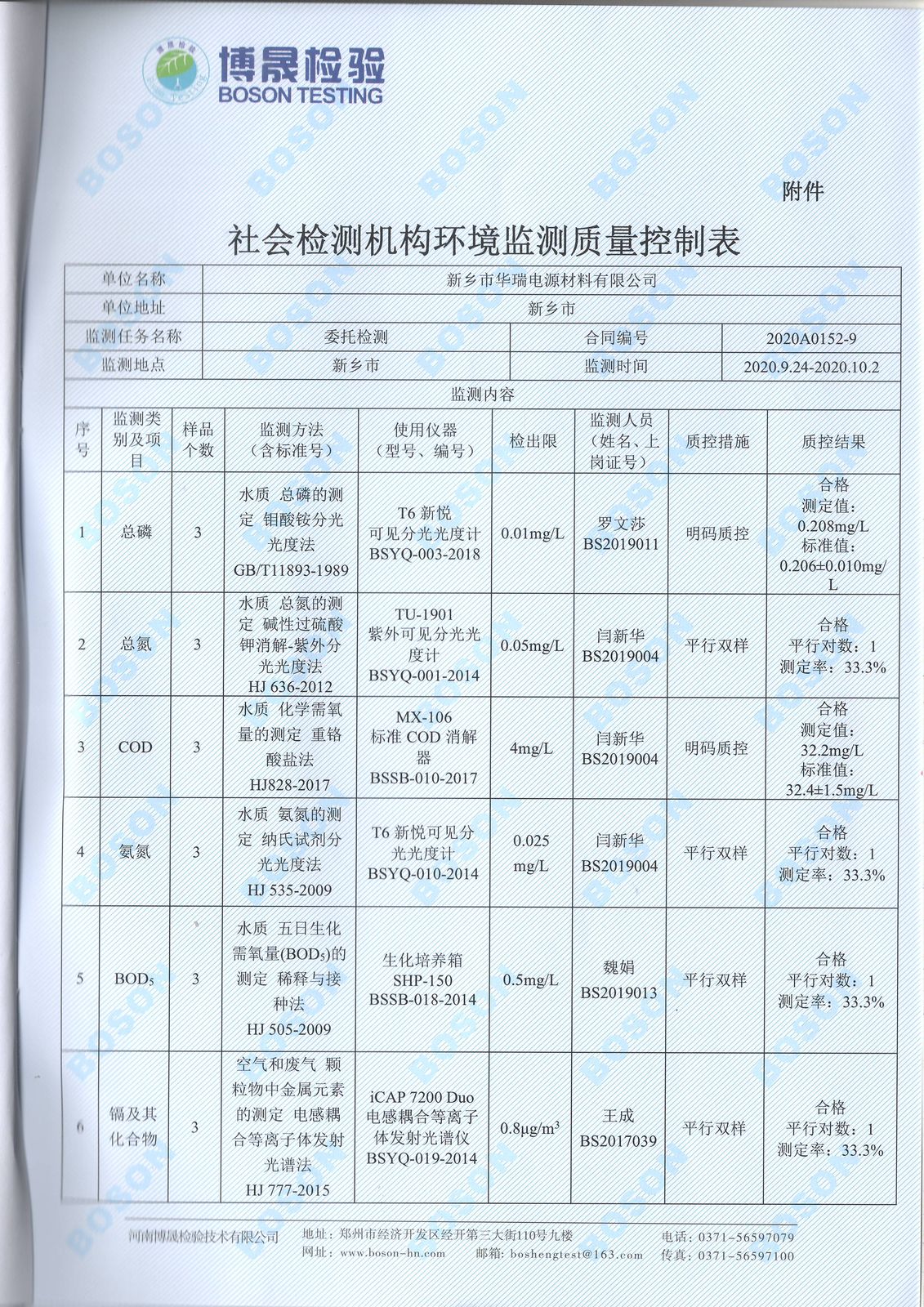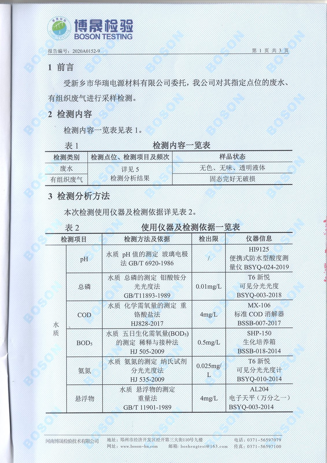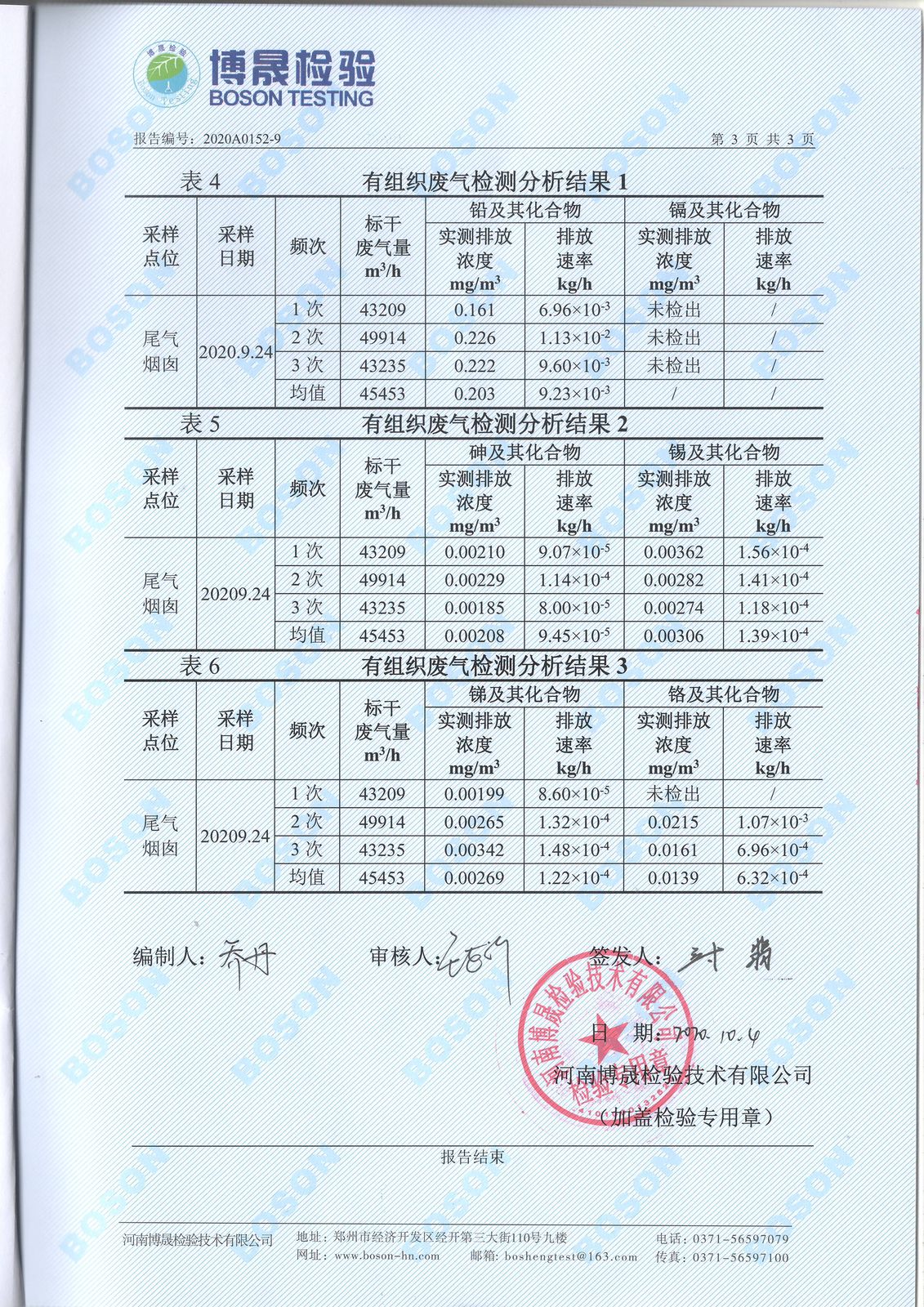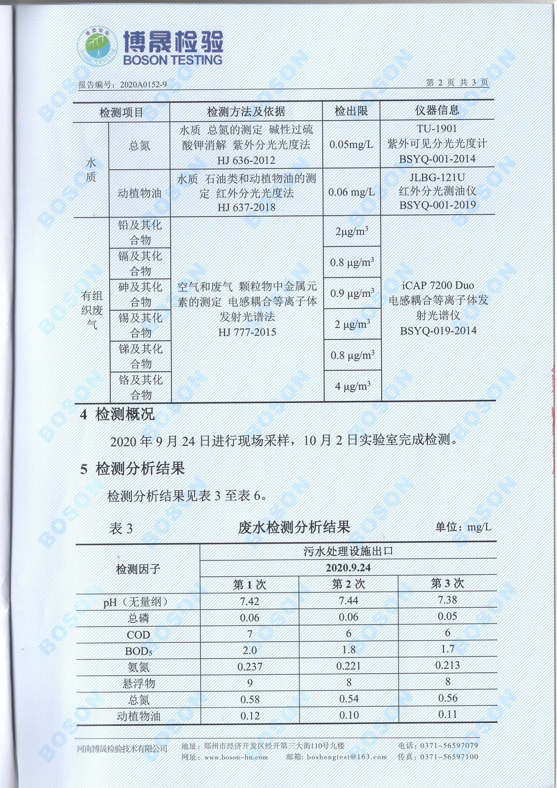 2020年九月份廢氣廢水檢測報告